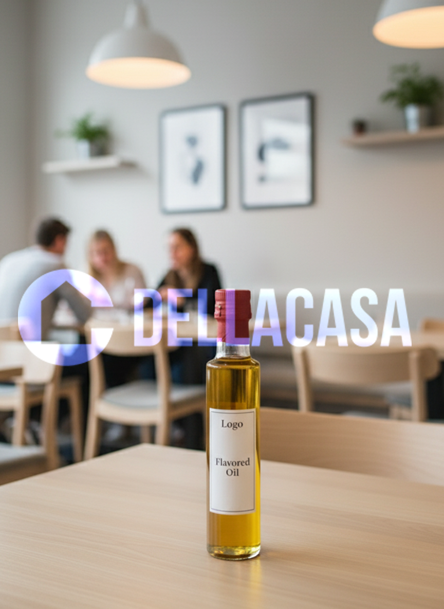 Rendi unica la tua attività con il tuo Olio Della Casa Personalizzato con Etichetta Brandizzata, un prodotto elegante e funzionale che valorizza l’immagine del tuo locale.