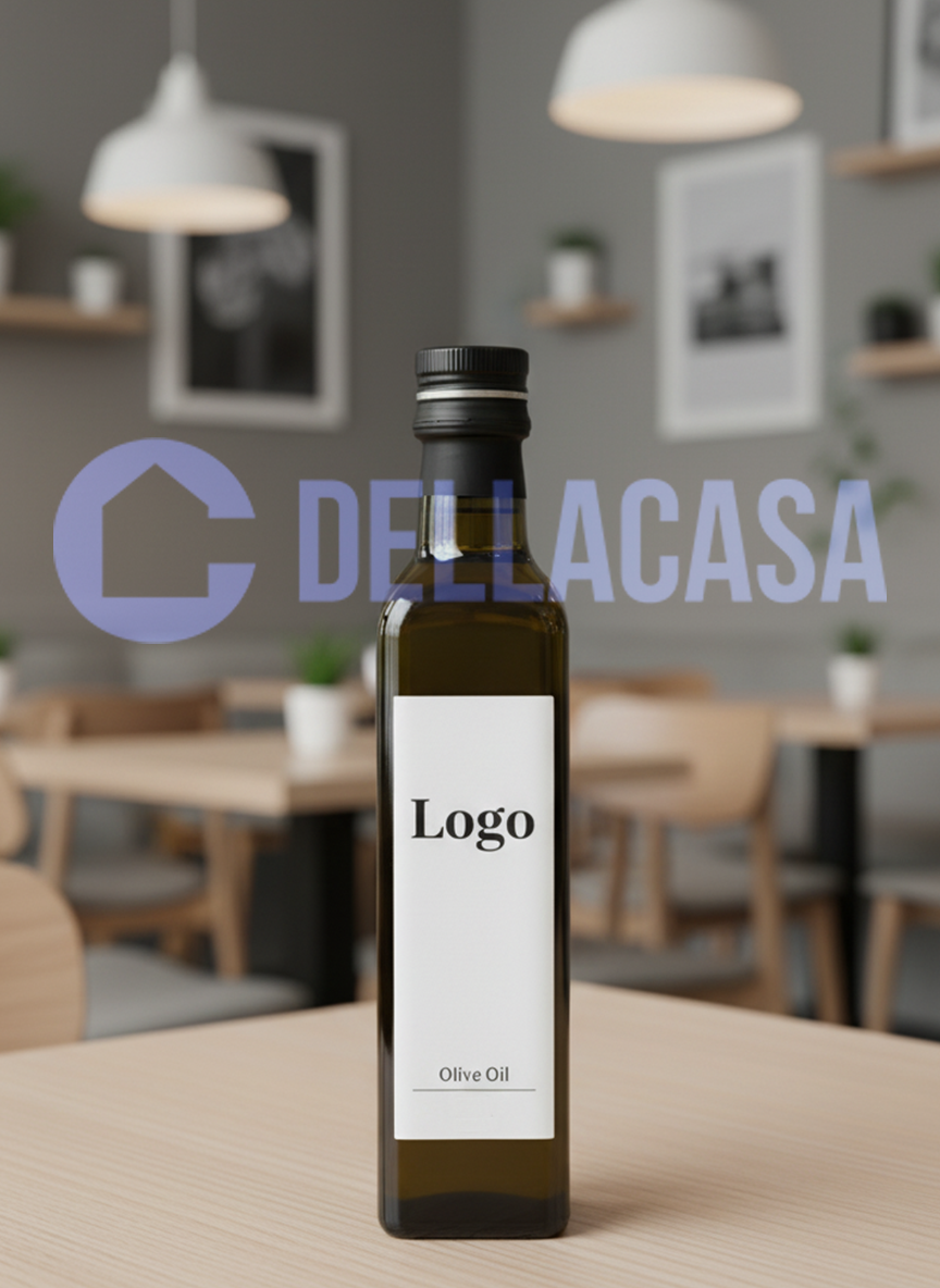 Olio Extra Vergine di Oliva Della Casa Personalizzato con Etichetta Brandizzata per Horeca – Eleganza e Immagine per la tua Attività.